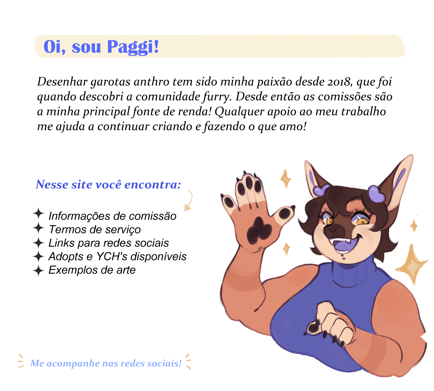 Minhas comissões serão abertas uma vez a cada trimestre aqui. Você também encontra os preços atualizados nesse link.Certifique-se de ler e concordar com meus termos de serviço antes de preencher seu pedido.O tempo de entrega varia entre 15 a 90 dias geralmente, ou no máximo 150 dias, dependendo do seu lugar na fila, que pode ser checado no meu trello.